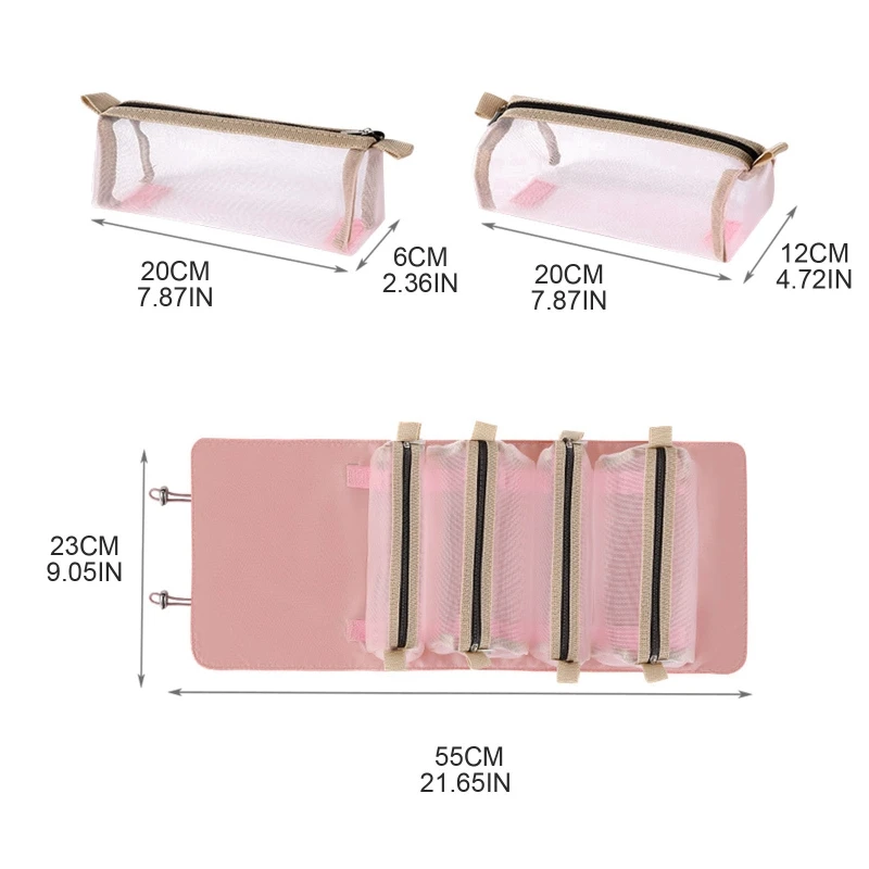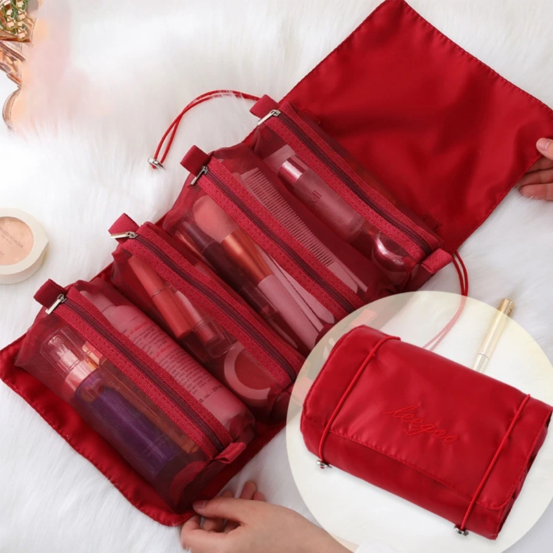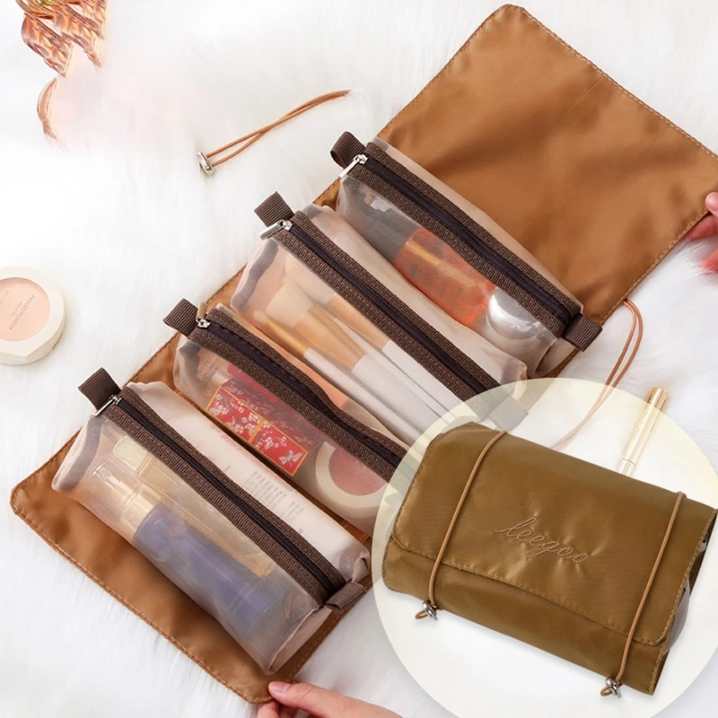 Hanging Roll Up Makeup Bag 4 in 1 Foldable Toiletry Bags for Travel Removable Storage Bags Cosmetic Organizer