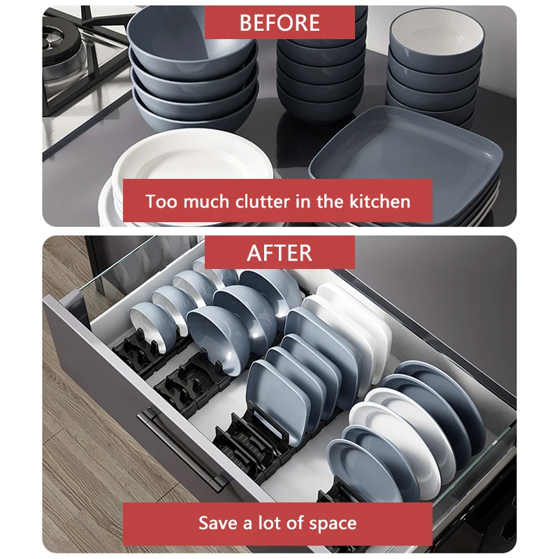 Rack de prato de armazenamento organizador de cozinha para armários de gaveta expansível material de ferro multi função firme tampa de armazenamento cortar titular