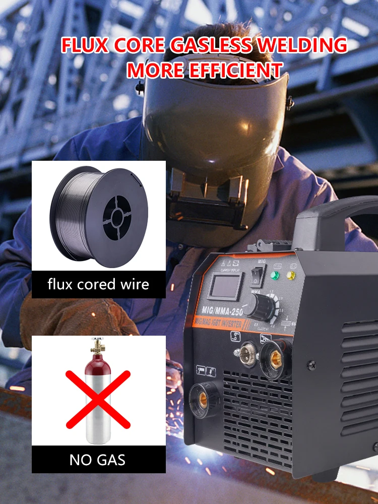 Полуавтоматический сварочный аппарат Mig 220 В, сварочный аппарат Arc без газа Mig, сварочный аппарат «Инверторный» 2 в 1, подходит для сварочного аппарата с флюсовой сердцевиной 0,8 мм 1,0 мм Легко для начинающих