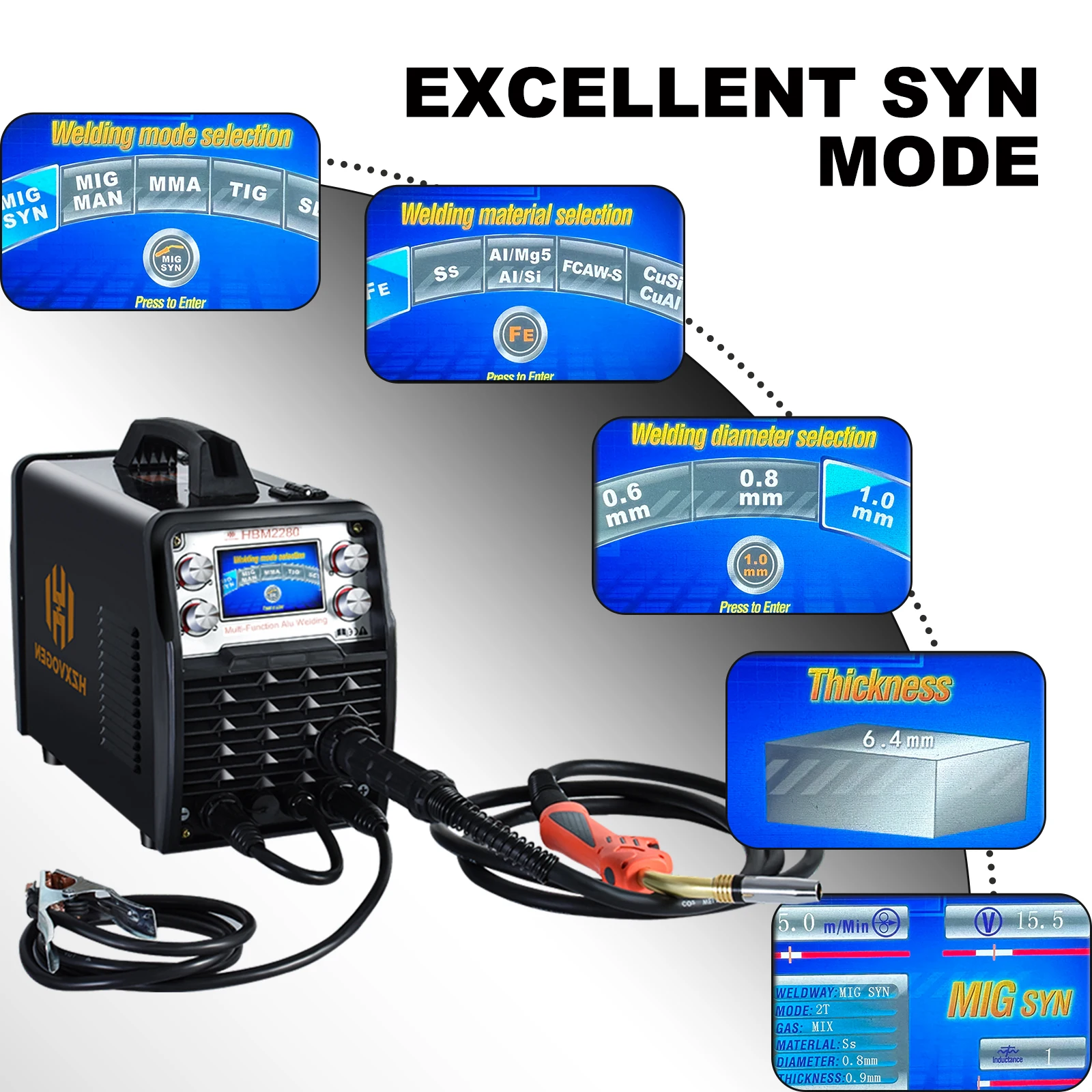 HZXVOGEN 5 в 1 безгазовый/газовый MIG ARC/MMA Tig HBM2280 алюминиевый синергический полуавтоматический сварочный аппарат инструменты сварочный Автомат - купить по выгодной цене