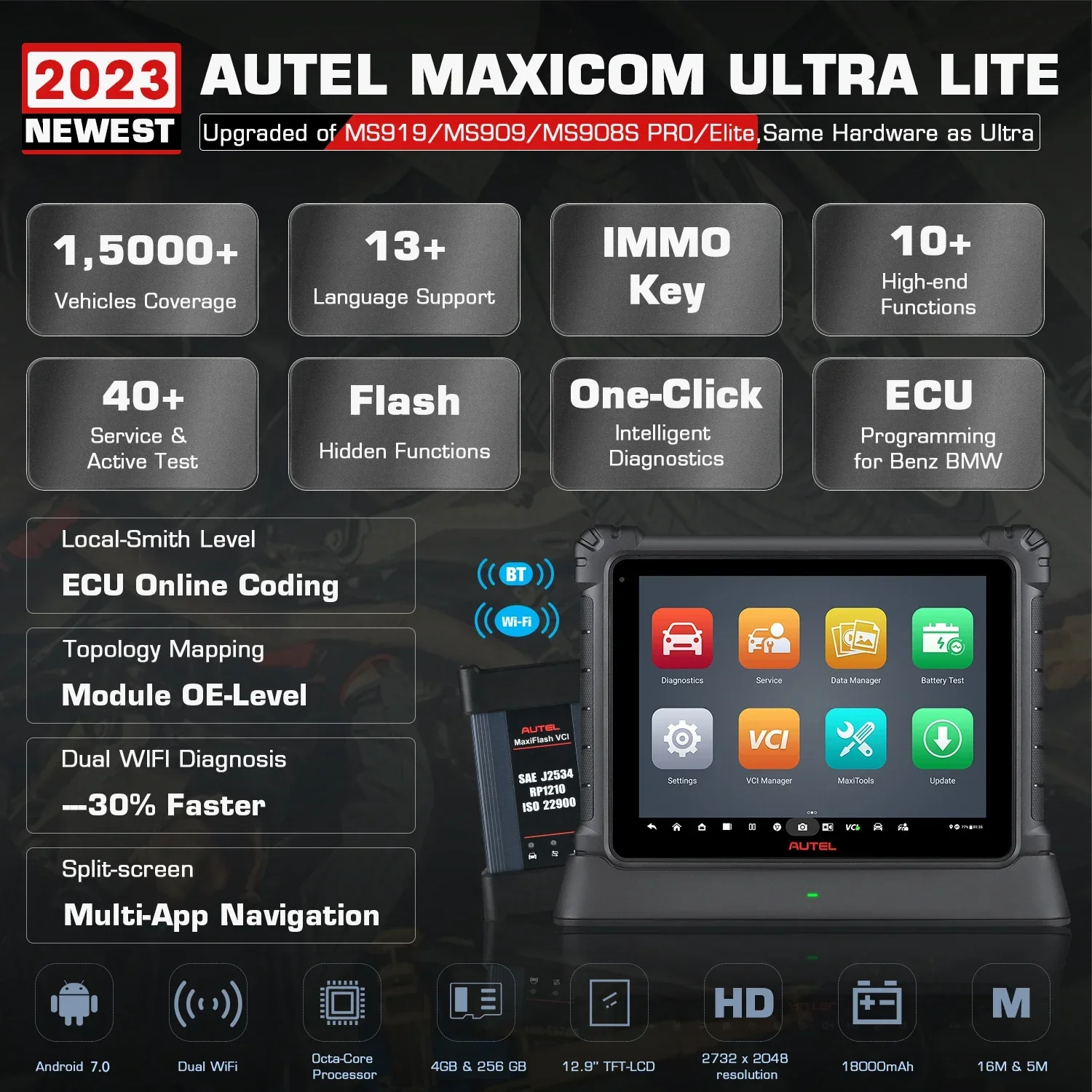Ferramenta diagnóstica automotivo inteligente Ultra Lite, teste ativo bi-direcional, programação do ECU e codificação, PK MS909 - AliExpress