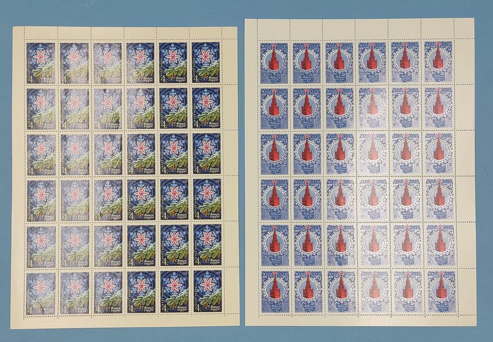 Марки. СССР. Большие листы. С Новым годом! 1978 г. 1979 г. Состояние на фото.