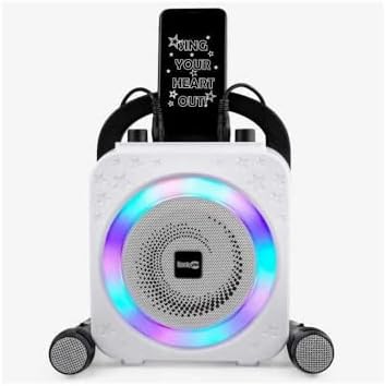 BLUETOOTH & AUX CONNECTIONS Connect to your mobile devices within seconds via Bluetooth or Auxiliary port to start your karaoke music or just general listening in seconds LIGHT SHOW A powerful light show that moves to the beat of the music and can be turned on or off depending on your mood. Speakers: Two 5 watt speakers powerful enough to fill the space inside and outside the home PERFORMANCE With the built-in battery, you can take the RockJam party karaoke machine with you wherever you go Duet: the RockJam party karaoke machine comes complete with two microphones so no extras need to be purchased
