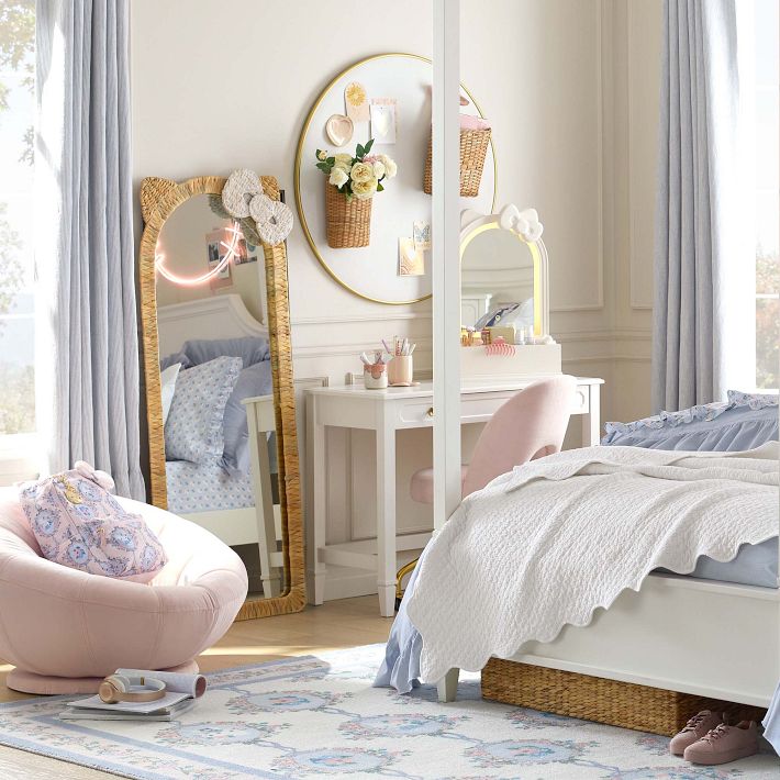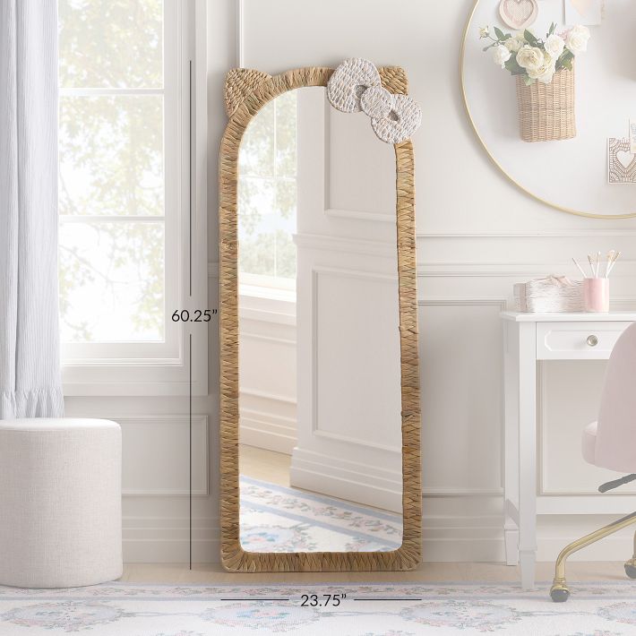<p>Leanorhangthisfloor-lengthmirrorfeaturingHelloKitty’siconicearsandsignaturebow.Perfectforhead-to-toeoutfitchecks,thewovenframeaddsacharmingtouchoftexturetoyourspace.</p> <ul> <li>Madeofwaterhyacinth,mirrorglass,MDF(mediumdensityfiberboard)andiron.</li> <li>Featuresahandpaintedfinish.</li> <li>Mountinghardwareincluded;2screwsand2anchors.</li> <li>Imported.</li> </ul> <p>©2025SANRIOCO.,LTD.UsedUnderLicense.</p>