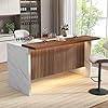 Looks so beautiful in my kitchen. We have a big wide kitchen so the island is a combination of dinning bar setting for us. There are no cabinets on the island so make sure you are aware about it. If you have a big kitchen this will look perfect, if the kitchen is narrow and small this size is not for you. The LED light at the bottom makes it look elegant in evenings.Took me a while to figure out how to build its a two person job and its quite heavy to lift.