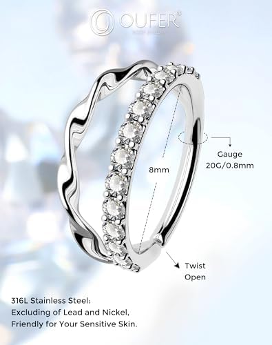 Amazon.com: OUFER Nose Rings Silver, 20G Double Hoop 8MM Nose Rings, Seamless Stainless Steel Rook Daith Piercing Jewelry for Women & Men : Clothing, Shoes & Jewelry