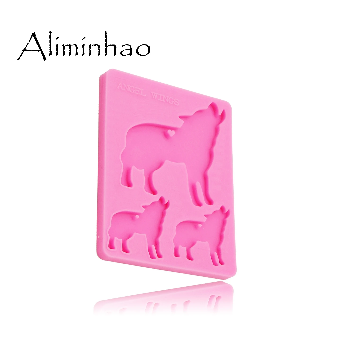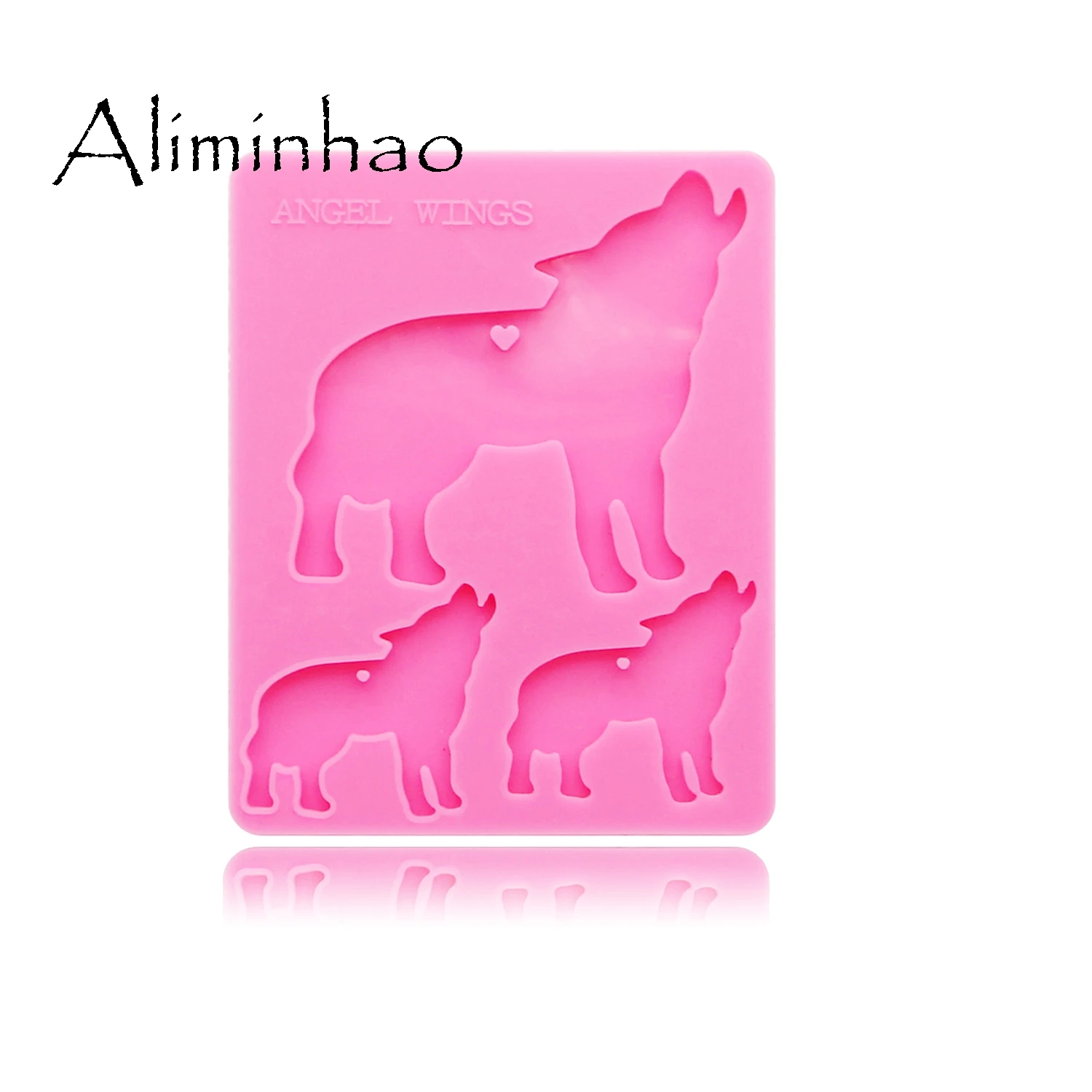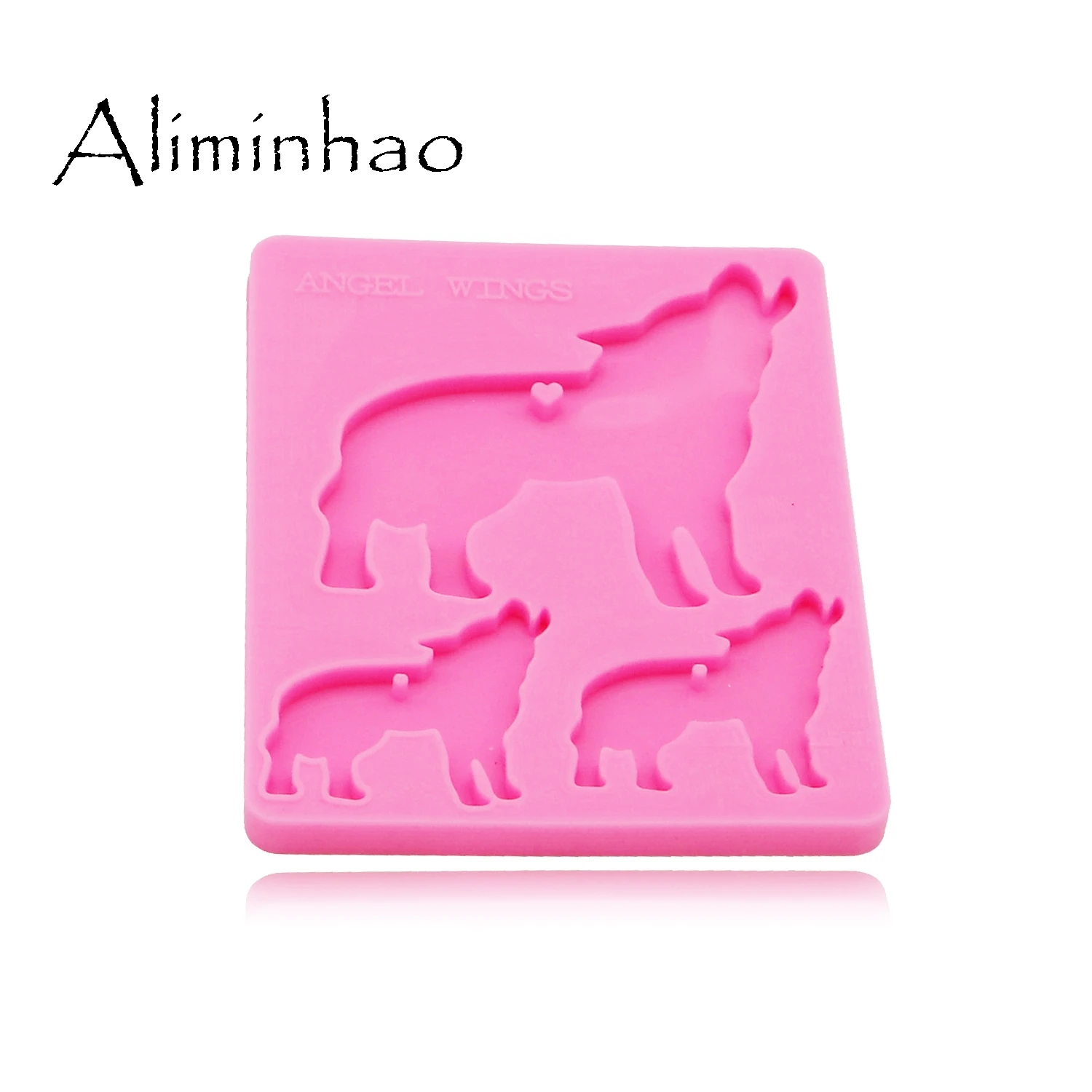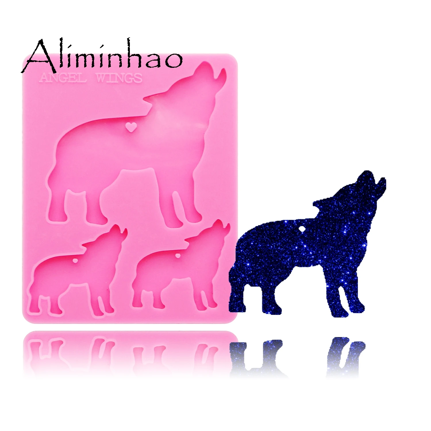 DY0164 блестящие Волчья семья, силиконовые формы DIY, эпоксидная форма волка матери и ребенка, силиконовая смола, формы для крафта, брелоки, форм...