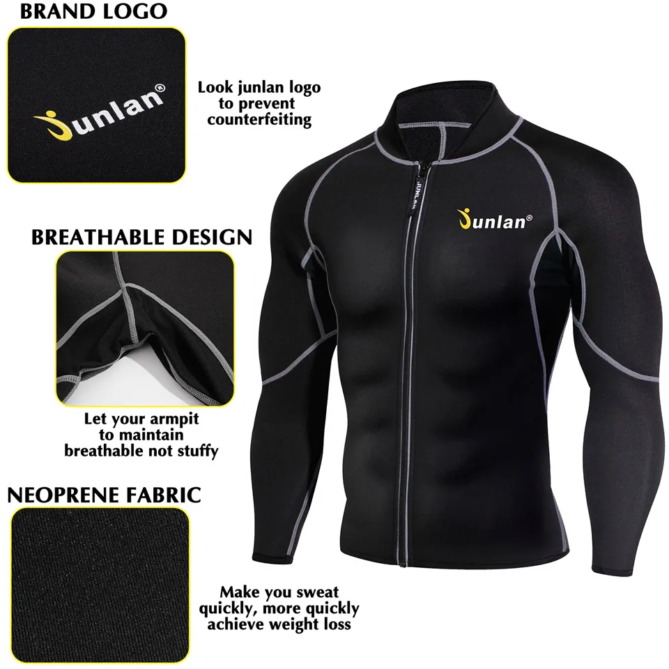 Мужской облегающий неопреновый боди Junlan, тренировочный топ на молнии с длинными рукавами, корректирующее боди для фитнеса, Формирователь ж...