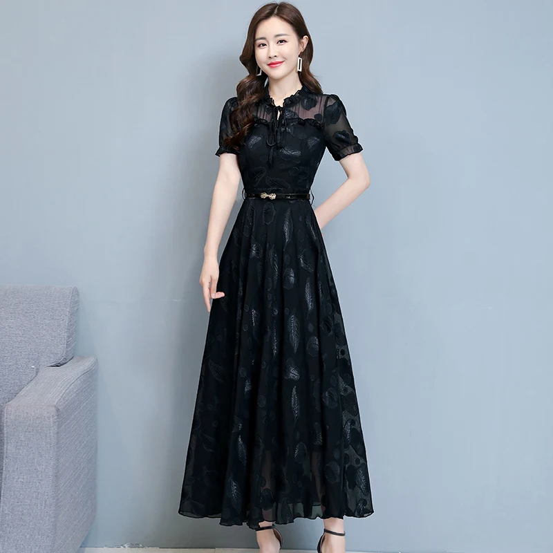 Летние черные шифоновые жаккардовые пляжное макси-платье элегантные женские вечерние пикантные розовые Vestido 2021 в винтажном стиле; Повседне...