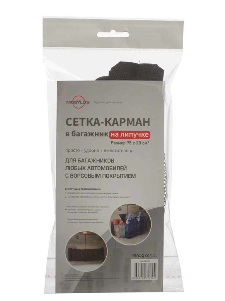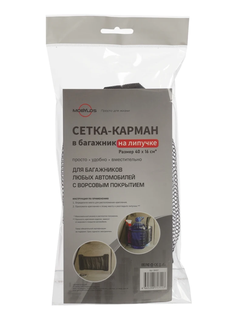 Сетка карман в багажник на липучке, автомобильный органайзер Mobylos 30436/37