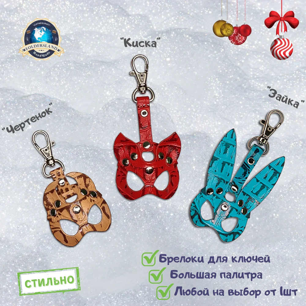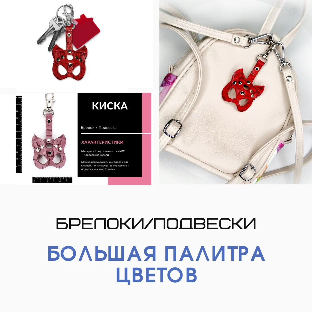 Брелок для ключей из натуральной кожи, подвеска на сумку на карабине bag66, киска